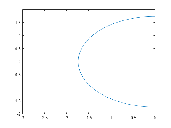x の区間 [-3 0] および y の区間 [-2 2] に、関数 をプロットします。