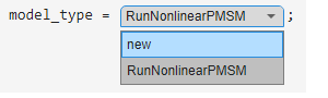 Alternatively, open the example model RunNonlinearPMSM.slx by selecting RunNonLinearPMSM for the model_type parameter.