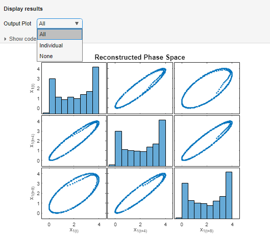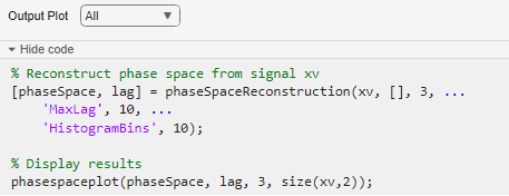 MATLAB エディターでライブ スクリプトに [位相空間の再構成] タスクを追加するには、次を行います。