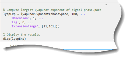 この例では、ライブ エディター タスクを使用して、等間隔にサンプリングされた信号の位相空間を再構成し、その再構成された位相空間を使用して相関次元とリアプノフ指数を推定する方法を説明します。