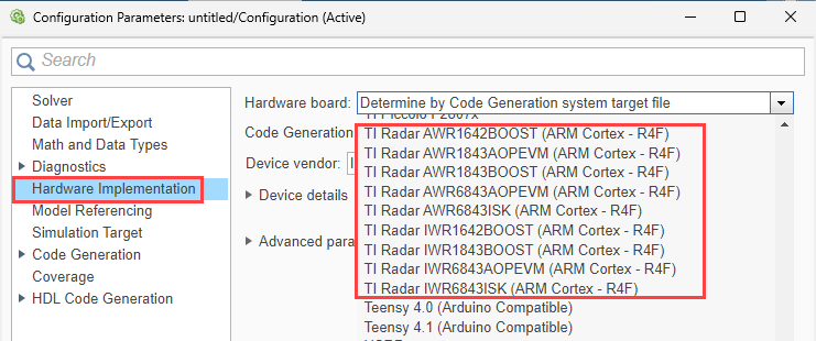 Radar Toolbox Support Package for Texas Instruments® mmWave Radar Sensors enables you to create and run Simulink models on the ARM® Cortex® processor of TI mmWave radar board. The support package includes a library containing the Read Detections block that helps you configure the TI mmWave radar and read detections in the ARM Cortex core. These detections can then be used to develop applications.