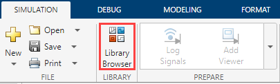 1. Open the Simulink Library Browser by selecting Simulation > Library Browser in Simulink, or by entering slLibraryBrowser in the MATLAB Command Window.