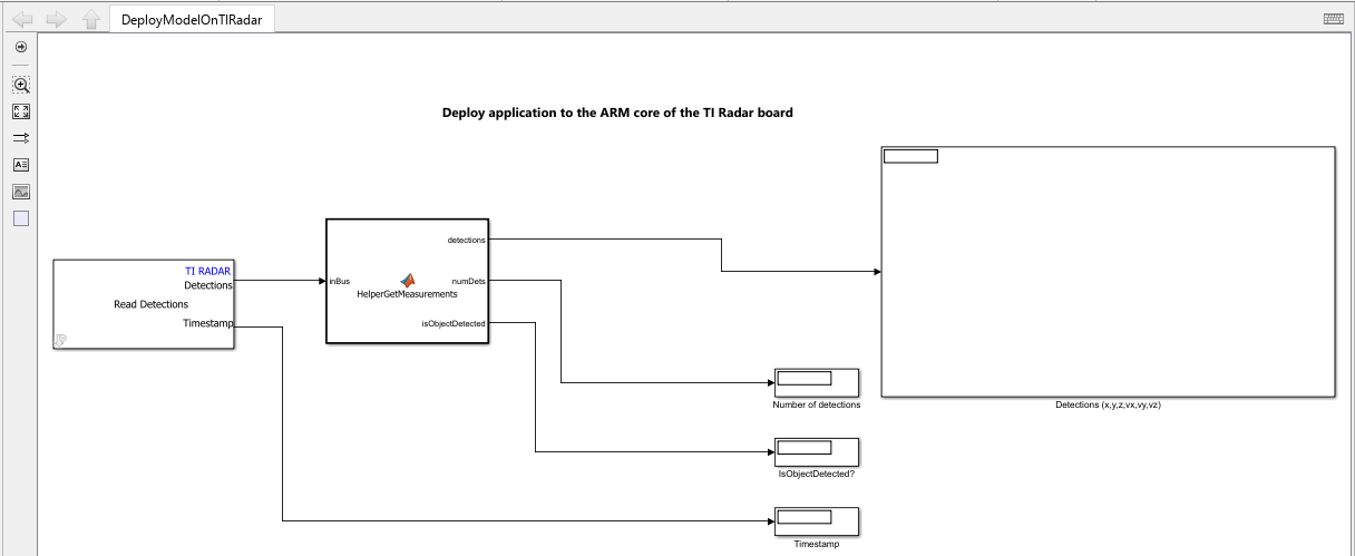 This example demonstrates how to use the Radar Toolbox Support Package for Texas Instruments® mmWave Radar Sensors to deploy a Simulink® model on the ARM® Cortex® core of a Texas Instruments mmWave Radar board.