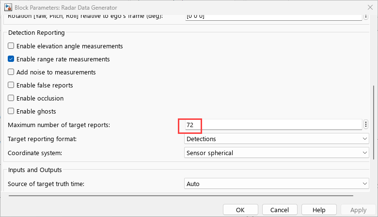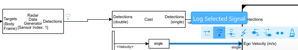 Instead of using a camera sensor object, you use sensor models designed to generate synthetic detections based on the ground truth. This example uses the Radar Data Generator block, which takes the ground truth actor poses from the scenario and simulates the radar's physical properties.