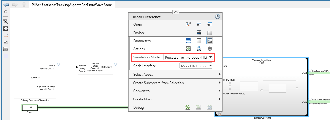 open_system("PILVerificationofTrackingAlgorithForTImmWaveRadar.slx");
