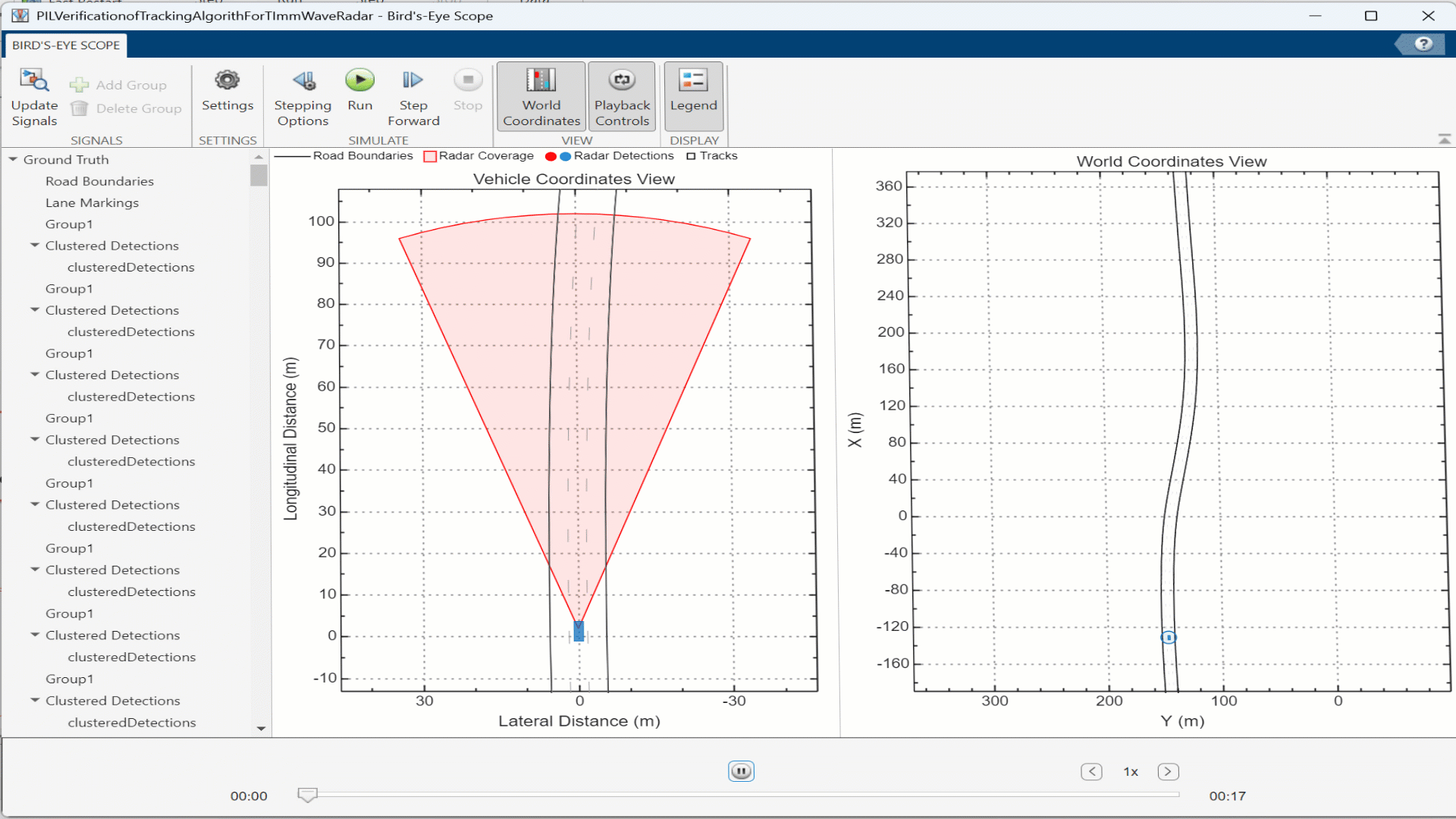 set_param('PILVerificationofTrackingAlgorithForTImmWaveRadar','StopTime','scenario.StopTime')
