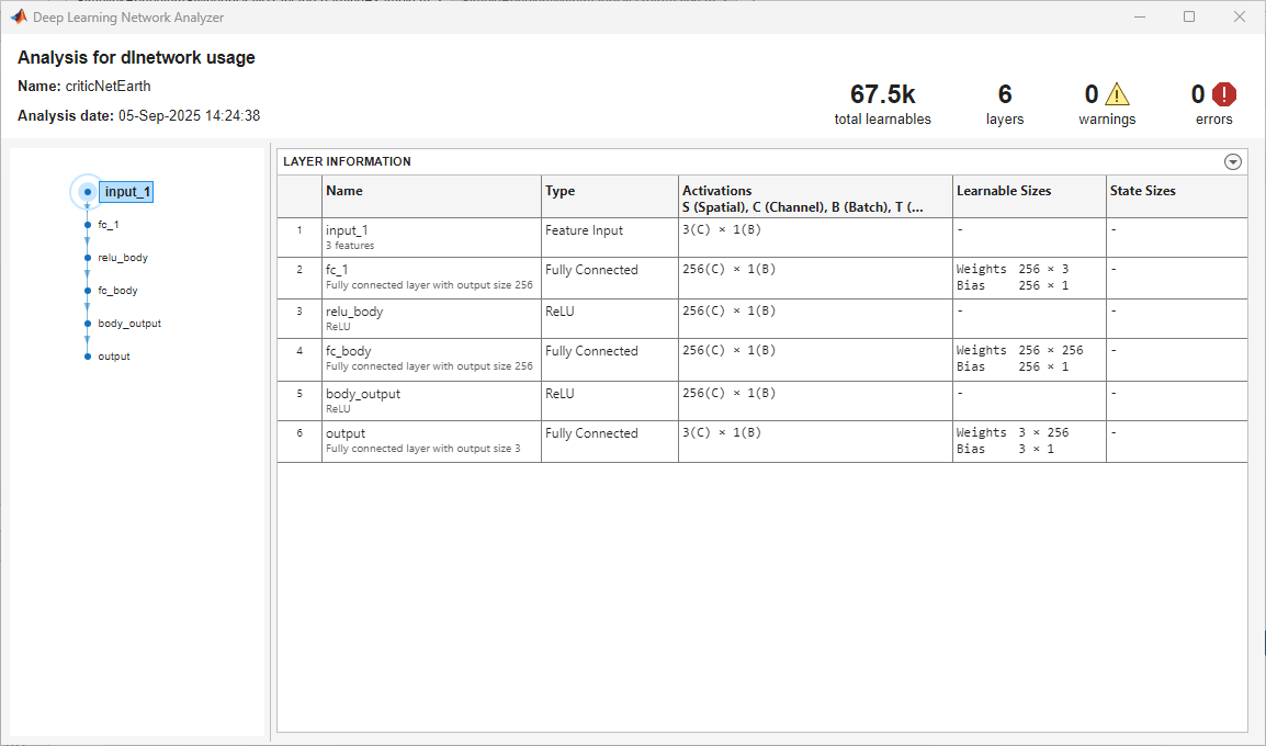 criticEarth = getCritic(agent); criticNetEarth = getModel(criticEarth); learnablesEarth = criticNetEarth.Learnables;