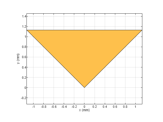 Figure contains an axes object. The axes object with xlabel x (mm), ylabel y (mm) contains 2 objects of type patch. These objects represent PEC, mydelta.