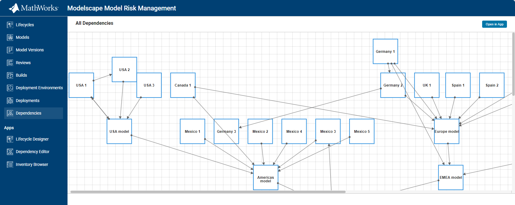 To add dependencies between models, click Open in App in the top right corner. This opens the page where you can edit dependencies.