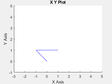 シミュレーションを実行します。最初の図は軌跡の位置のベクトル q の出力を示します。2 つ目の図は速度の qdd のベクトルを示します。各ウェイポイント遷移の台形プロファイルに注目してください。"X Y プロット" には実際の 2 次元軌跡が示されており、これは指定されているウェイポイントを通過しています。