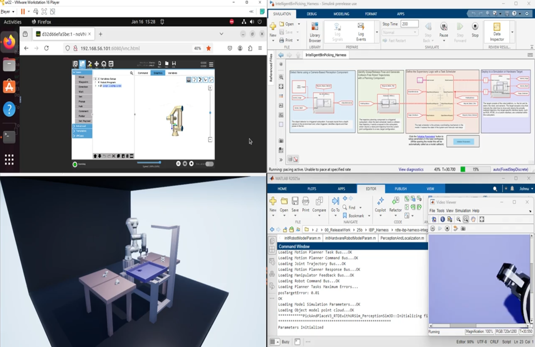 sim('IntelligentBinPicking_Harness.slx');This image shows the UR Series cobot in action, at a particular waypoint along