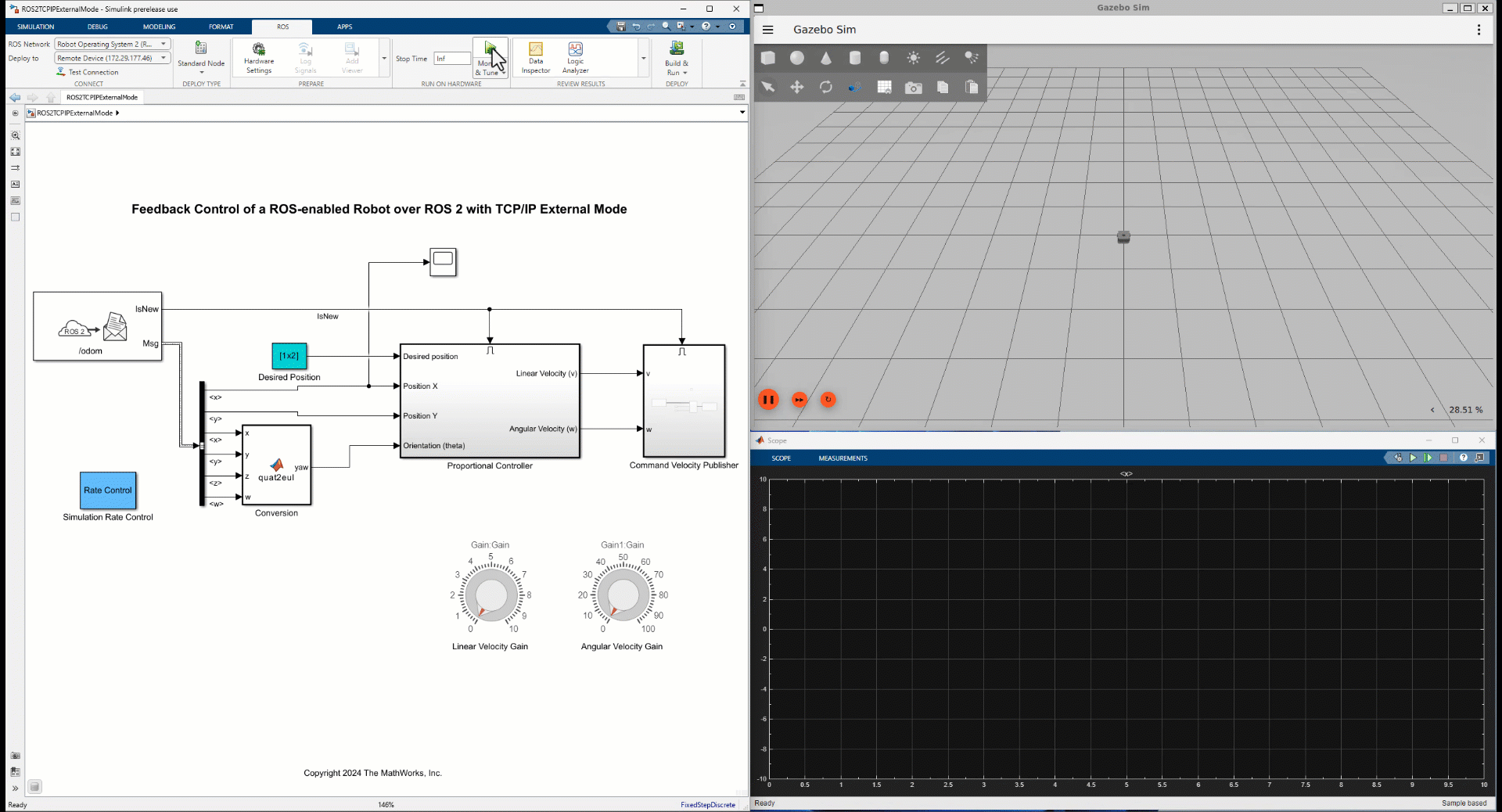 Feedback Control of ROS 2 Robot with TCP/IP External Mode