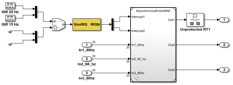 When the value of the input port is nonzero, Simulink imitates the behavior of each interrupt by calling the destination function unconditionally where the interrupt occurs.