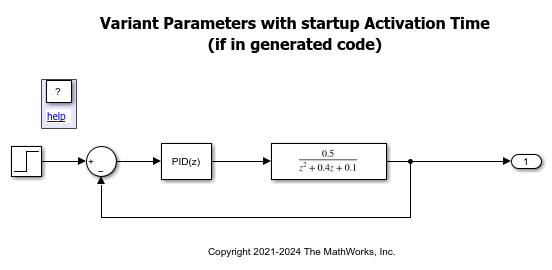 In this example, you build an executable that represents the step response of a linear system with PID controller. In the executable, the PID parameters, proportional gain and integral gain, are specified as variant parameters that have multiple values to cater to multiple requirements. Each value is associated with a variant control expression. When you run the executable, Simulink® evaluates the condition expressions. Based on the condition expression that evaluates to true