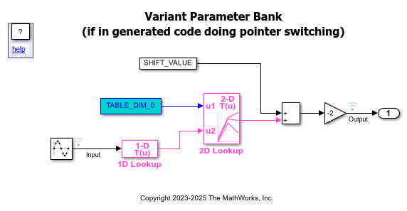 VCtrl = Simulink.VariantControl('Value',int32(1),'ActivationTime','startup'); TABLE_DIM_0 = Simulink.VariantVariable('Choices',{'VCtrl == 1',10,'VCtrl == 2',20});