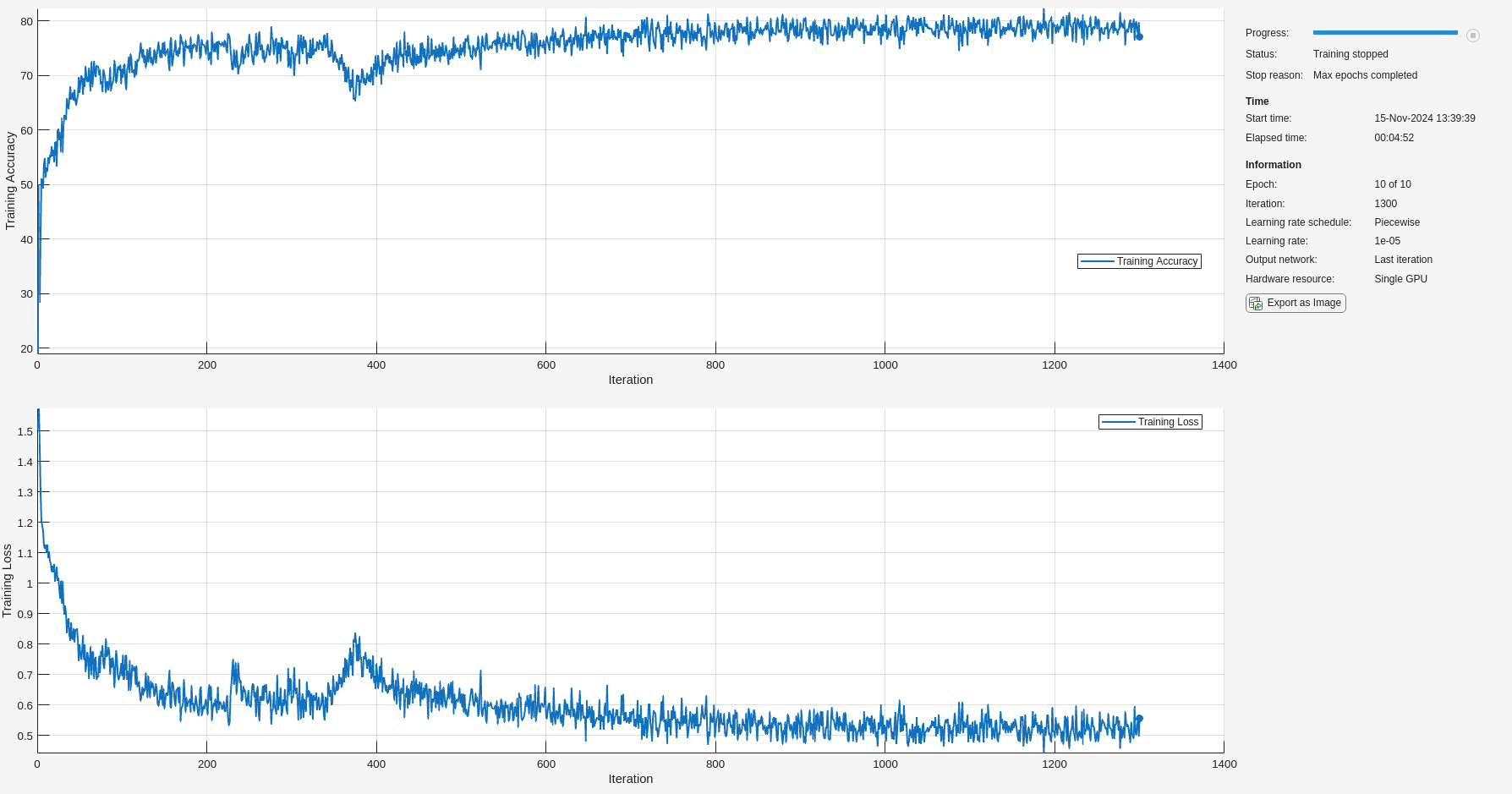 if actionFlag == "Train networks" filteredNet = trainnet(filteredTrainSignals,trainLabels,layers,"crossentropy",options); end