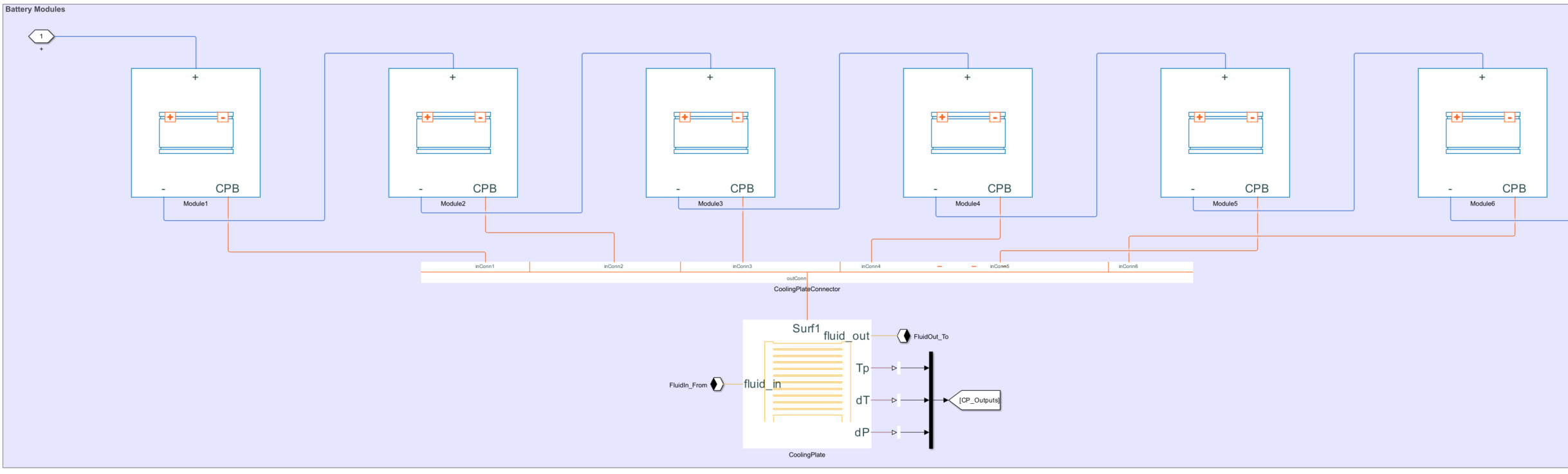 moduleassembly = batteryModuleAssembly(... repmat(batteryModule,1,2), ... StackingAxis="Y",... InterModuleGap=simscape.Value(0.005,"m"));