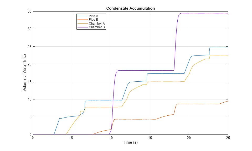 この例では、Simscape™ Foundation Library の湿り空気コンポーネントを使用して、湿潤環境で作動する空気圧アクチュエータをモデル化する方法を説明します。Directional Valve は 4 つの Variable Local Restriction (MA) ブロックで構成されるサブシステムで、Double-Acting Actuator は、機械の方向が逆の 2 つの Translational Mechanical Converter (MA) ブロックで構成されるサブシステムです。