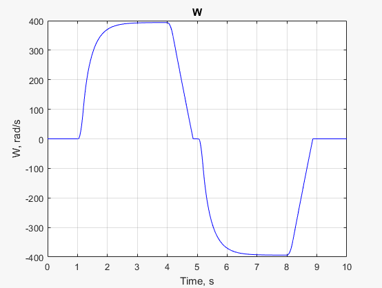 を選択します。ブロックを選択した状態で、関数 simscape.logging.findNodeを使用し、W(モーターの角速度を表す信号) のデータが含まれるノードを検出して保存します。nRef = simscape.logging.findNode(simlogRef,gcbh)