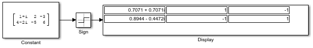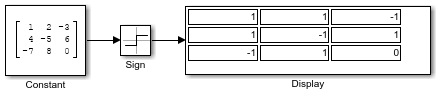 Sign ブロックは実数入力に対して、次のように入力の符号を出力します。