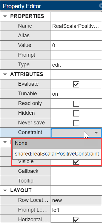 メモ: MAT ファイルで作成した共有の制約を使用するには、構文 Simulink.Mask.Constraints.convertMatToXML(matFileName, xmlFileName) を使用して XML ファイルに変換する必要があります。matFileName は変換する MAT ファイルの名前、xmlFileName は作成する XML ファイルの名前です。詳細については、Simulink.Mask.Constraints.convertMatToXMLを参照してください。