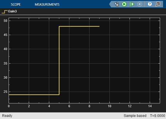 s = simulation(mdl); s = setBlockParameter(s, "RuntimeVariantModelArgumentWithoutPM/ModelRefArg", ... "ParameterArgumentValues", struct('mdl_arg','1')); step(s,PauseTime=5); s = setBlockParameter(s, "RuntimeVariantModelArgumentWithoutPM/ModelRefArg", ... "ParameterArgumentValues", struct('mdl_arg','2')); step(s,PauseTime=10); out = stop(s);