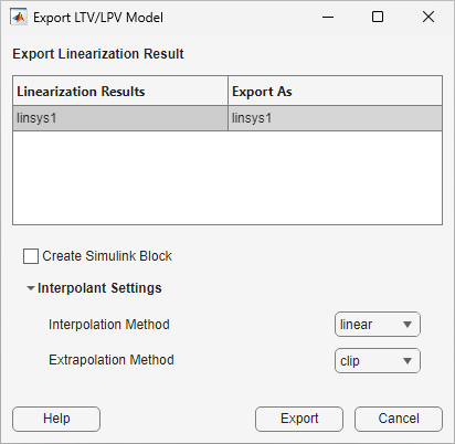 Simulink ツールストリップ: [線形化] タブで、[ブロックの線形化] をクリックします。