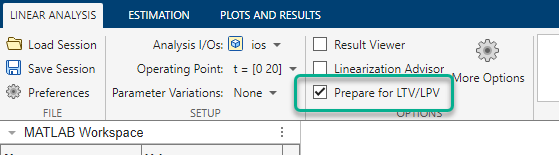 Simulink ツールストリップ: [アプリ] タブの [制御システム] で、[モデル線形化器] をクリックします。