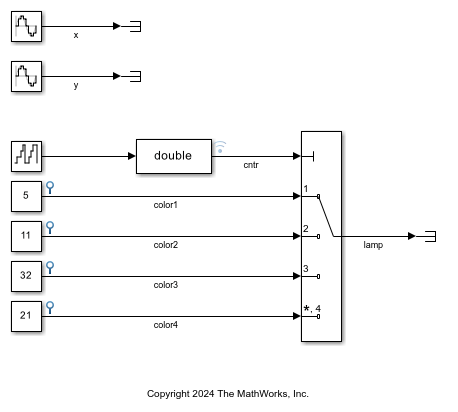 This example shows how to create an Instrument object and apply Instrument object methods. This example uses real-time application slrt_ex_traffic_lights.mldatx and includes the signals that are connected to the instrument object.