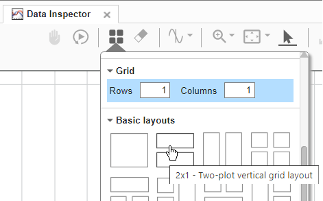 [データ インスペクター] タブで [可視化とレイアウト] をクリックし、[基本レイアウト] で [2x1 - 2 プロット垂直方向グリッド レイアウト] を選択します。