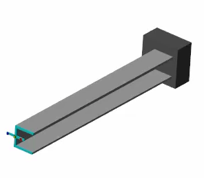 Simscape Multibody では、すべての柔軟ビームは弾性のたわみ変形、軸変形、ねじり変形をもつことができます。ビームは細長体と仮定されます。その長さは断面全体の寸法を大きく超えていなければならず、変形はすべて線形で小さくなければなりません。