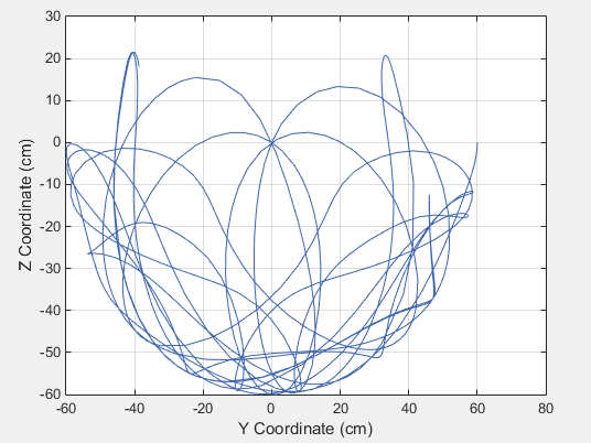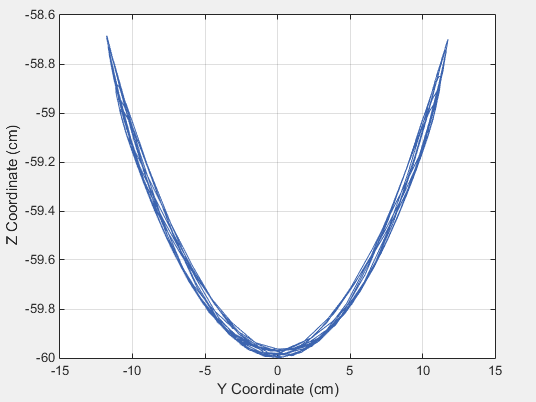 これで、下位のリンクの位置座標をプロットする準備が整いました。これを行うには、MATLAB コマンド ラインで次のように入力します。