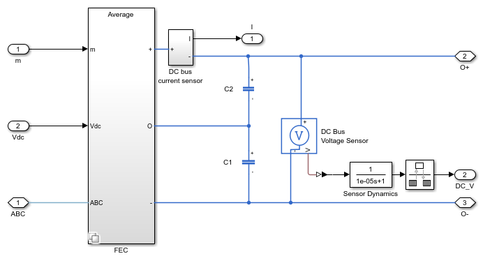 このコンバーター回路は、3 レベルの忠実度でモデル化されます。