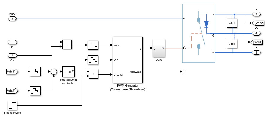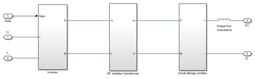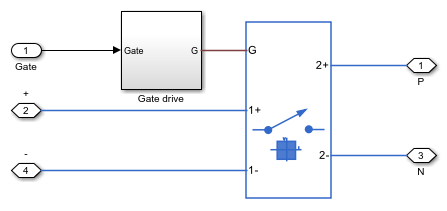 Average-Value Voltage Source Converter (Three-Phase) | Converter (Three-Phase) | Three-Level Converter (Three-Phase) | Four-Quadrant Chopper | Four-Pulse Gate Multiplexer | Battery (Table-Based)