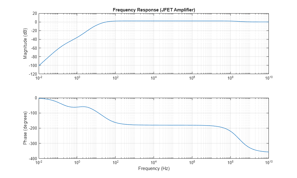 Simulink® Control Design™ をお持ちの場合は、周波数応答をプロットするために、モデル JFETFrequencyResponse を開きます。[アプリ] タブの [制御システム] で、[モデル線形化器] をクリックします。モデル線形化器の [線形解析] タブの [線形化] セクションで、[ボード線図] をクリックします。Simulink ラインを右クリックし、[線形化のポイント] を選択することで、このモデルの線形化のポイントを定義します。