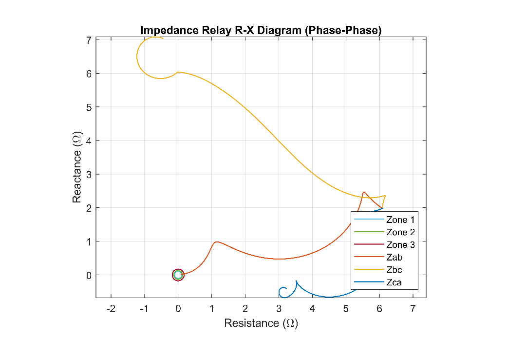 このリレーは、回路ブレーカーから故障点までの線路インピーダンスを推定します。推定したインピーダンスが最初のゾーンのリーチに達していない場合、リレーは時間遅延なしにトリップ信号をトリガーします。推定したインピーダンスが 2 番目のゾーンのリーチに達していない場合、リレーは有限の時間遅延の後にトリップ信号をトリガーします。推定したインピーダンスが 3 番目のゾーンのリーチに達していない場合、リレーは時間遅延の後にトリップ信号をトリガーします。この時間遅延は 2 番目のゾーンの時間遅延より長い必要があります。