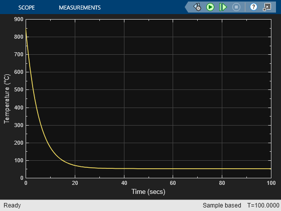 In this example, the Specific heat coefficient parameter of the Thermal Mass block and the Heat transfer coefficient of the Convective Heat Transfer block are estimates from a scale-model laboratory study of industrial quenching of a steel cylinder in water [2]. For simplicity, these parameters are constant. For more accurate simulation results, specify these coefficients as functions of the temperature if the data are available. Alternatively, run simulations with different values of these parameters to obtain a range of estimates.