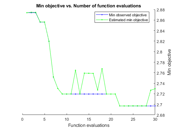 MaxObjectiveEvaluations | 目的関数評価の最大数。ConstraintBounds を使用して最適化問題を複数指定する場合、MaxObjectiveEvaluations の値は各最適化問題に個別に適用されます。 | "bayesopt" および "randomsearch" の場合は 30、"gridsearch" の場合はグリッド全体 |
