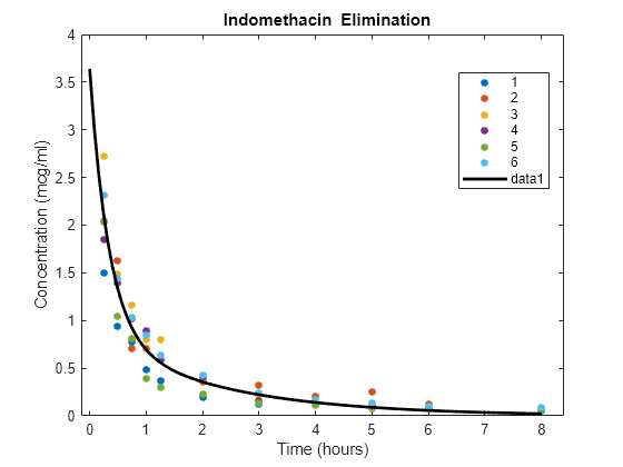 [ は、非線形混合効果の回帰モデルを当てはめ、BETA,PSI,STATS,B] = nlmefitsa(X,Y,GROUP,V,MODELFUN,BETA0)BETA に固定効果の推定を返します。既定の設定では、nlmefitsa は、各モデル パラメーターが対応する固定効果と変量効果の和となり、変量効果の共分散行列が対角行列、すなわち、無相関の変量効果となるモデルを当てはめます。