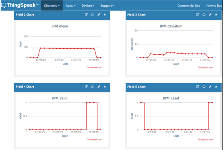 Open your ThingSpeak channel that you have configured in the model, to view the BPM values.