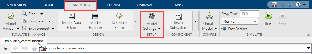 Configuring the Model for Supported STMicroelectronics Nucleo Board