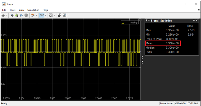 4. Observe the signal logging in the Host model to read the Vout as transmitted from the target model. The following hardware result shown are for Buck Converter.
