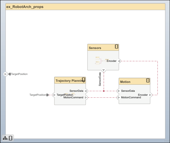 このチュートリアルでは、プロパティをもつモバイル ロボットのアーキテクチャ モデルを使用し、システムの総コストを計算して静的解析を実行します。プロパティとステレオタイプの詳細については、ステレオタイプを使用したアーキテクチャ設計の拡張を参照してください。