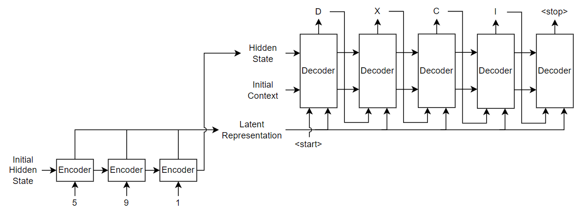 再帰型符号化器-復号化器モデルは、要旨のテキストの要約やニューラル機械翻訳のようなタスクにおける有効性が証明されています。このモデルは、通常、LSTM のような再帰層で入力データを処理する "符号化器" と、第 2 の再帰層で符号化された入力を目的の出力にマッピングする "復号化器" で構成されます。"アテンション メカニズム" を組み込んだモデルでは、変換を生成しながら、符号化された入力の一部に復号化器の焦点を当てることが可能です。