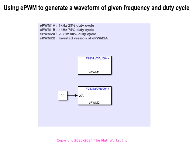 ePWM2 は、20 kHz の周波数の波形を生成するように構成されています。
