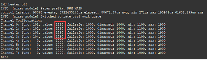 UAV Toolbox Support Package for PX4 Autopilots includes a Simulink blocks for for writing thrust and torque setpoint value. In this example, you generate code for a Simulink model and deploy it to a PX4 Cube Orange, and thus spin the motors at 20% throttle.