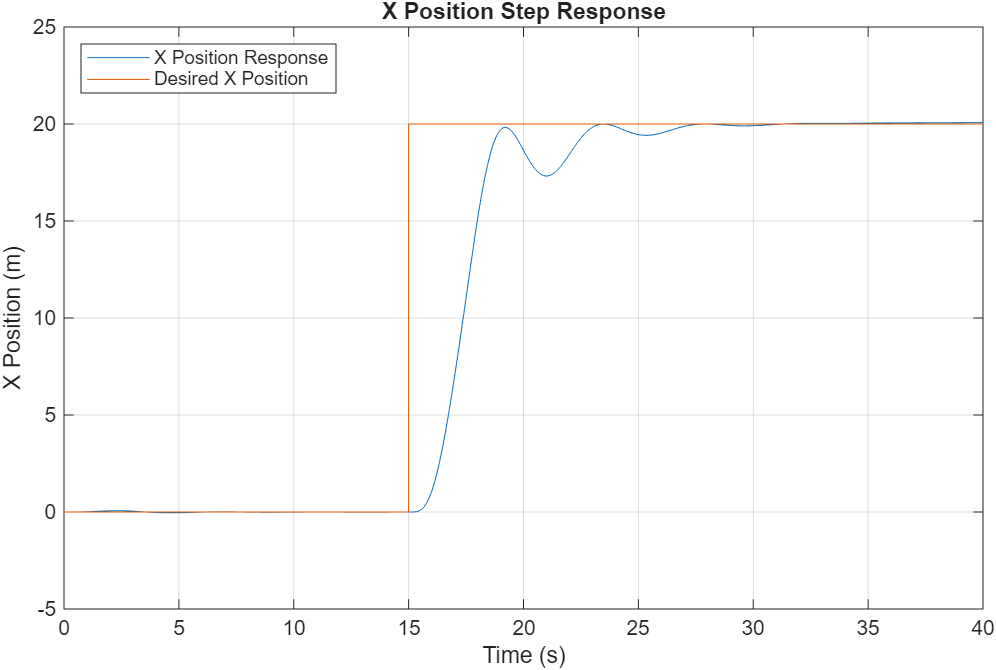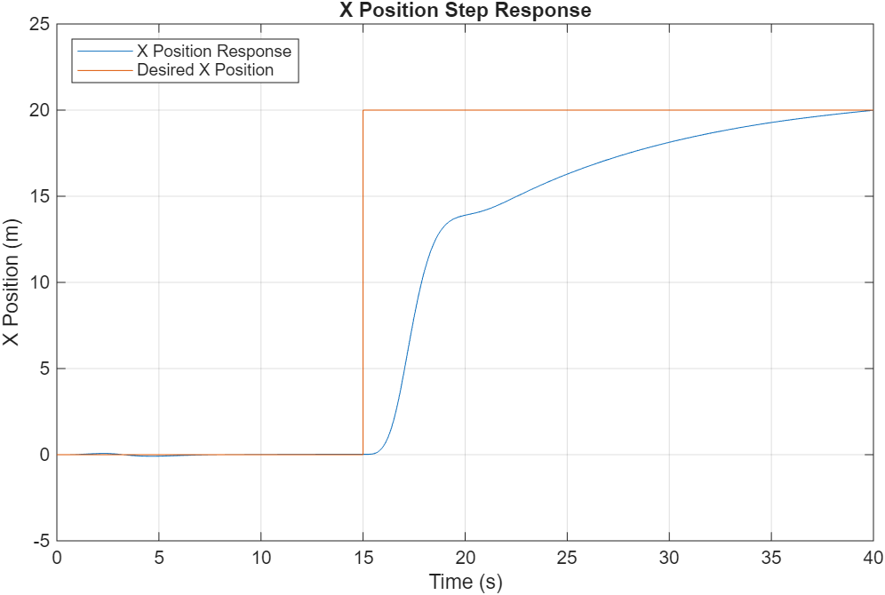 legend("X Position Response","Desired X Position",Location="northwest")