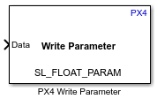 The Write Parameter block writes to the PX4 system parameter you specify, allowing easy parameter modification.