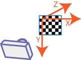 カメラ ベースの座標系の点は、カメラの光学的な中心を原点として表現されます。
