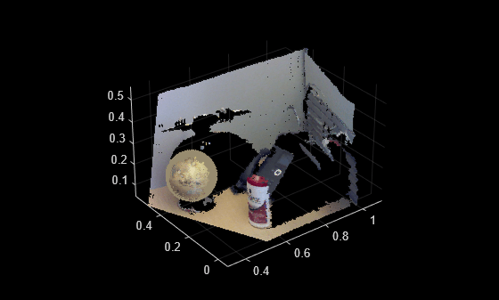 figure pcshow(spherePtCloud) hold on pcshow(ptCloud)